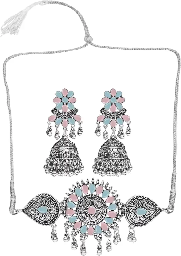 Base Material: Oxidised Silver Color:Multicolor Type: Earring & Necklace Set Ideal For: Women, Girls, Baby Girls Gemstone: Cubic Zirconia Certification: Brand Certification Net Quantity:1