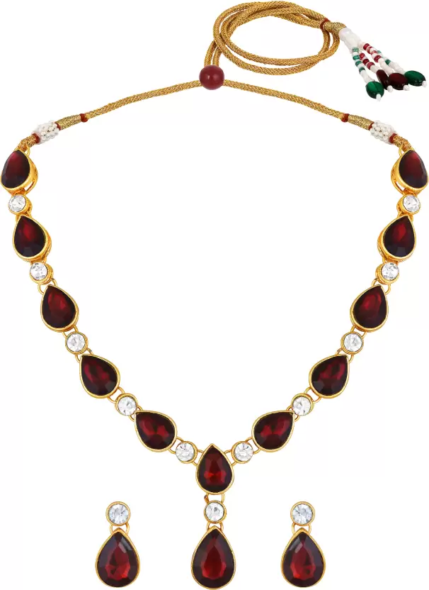 Base Material: Alloy Color: Maroon Type: Earring & Necklace Set Ideal For: Women, Girls Plating: Gold-plated Gemstone: Crystal Net Quantity: 1