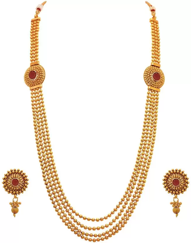 Base Material: Copper Color: Gold, Maroon Type:Earring & Necklace Set Ideal For: Women, Girls Plating:Gold: plated Net Quantity: 1 Sales Package: 3